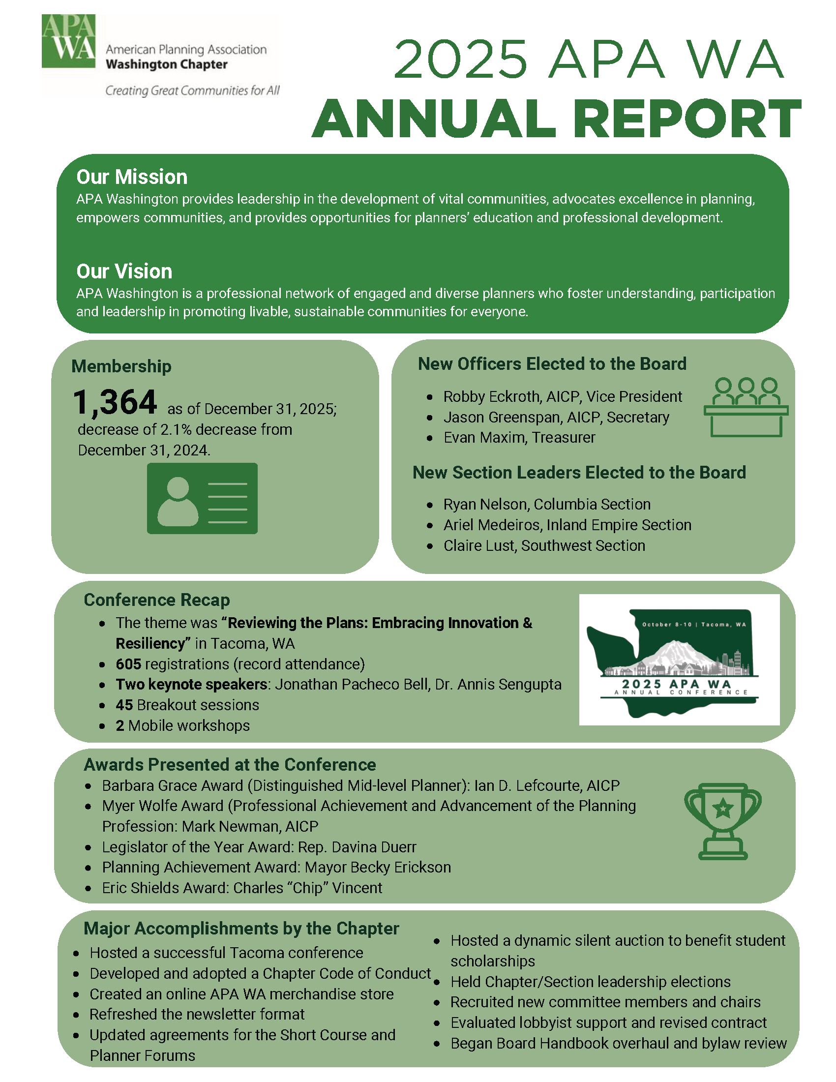 Take a look at the APA WA 2025 Annual Report. See membership numbers, new officers elected to the board, Conference recap, and more.